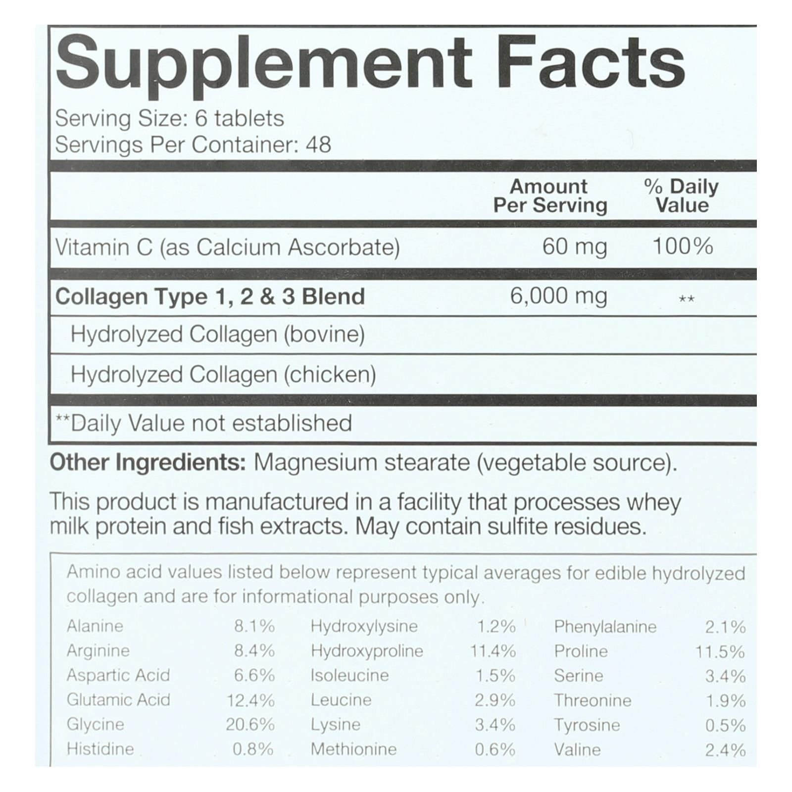 Youtheory collagen advanced dietary supplement is a tablet-derived supplemental source of vitamin c and dietary protein. Use it to replenish collagen and fight the effects of aging on your skin. This gluten-free, soy-free and dairy-free product contains hydrolyzed collagen. There are 290 tablets in this bottle. See the nutrition facts panel for allergens.