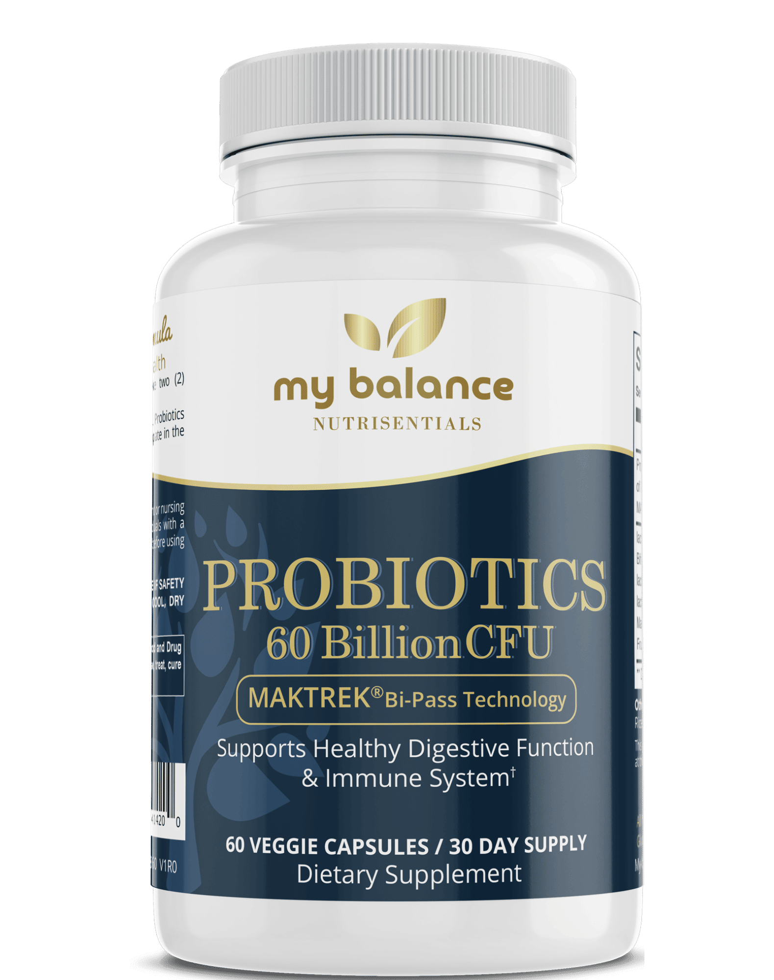 My Balance Probiotic 60 billion is a dietary supplement formulated with a blend of four probiotic strains, each contributing to a diverse probiotic profile. This product contains 60 billion CFU (colony-forming units) per serving and includes the following strains: